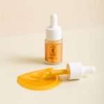 - Teteskan beberapa tetes Serum Gold Daviena pada telapak tangan.